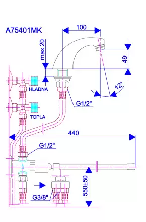 • Slavina - ventil za TOPLU / HLADNU vodu - fiksni izliv - Otvaranje polugom za koleno Rosan A75401MK