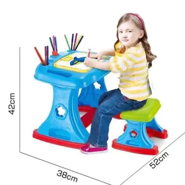 • Sto i radni sto sa tablom za crtanje i pisanje namenjen je deci uzrasta od dve godine i starijima. U pitanju je edukativna igračka koja kombinuje funkcionalnost dečijeg stola i projektor za učenje i crtanje, čineći svaku aktivnost zanimljivom i interaktivnom. Dete može crtati, bojiti ili vežbati slova i brojeve, dok projektor projektuje slike koje pomažu u učenju i praćenju kontura.