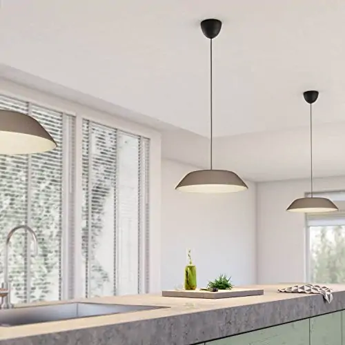 • Elegantna metalna viseća svetiljka tople sive boje.