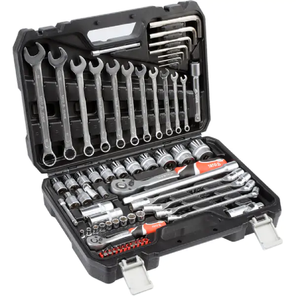 • Profesionalna garnitura alata YATO od 77 delova predstavlja kompaktno, ali sveobuhvatno rešenje koje kombinuje vrhunski kvalitet sa praktičnom organizacijom za širok spektar zadataka u servisima, radionicama i zahtevnim domaćinstvima. Set, organizovan u pogodan plastični kofer, integriše tri ključna pogona (1/4", 3/8" i 1/2"), čime pokriva većinu potreba od preciznih popravki do zahtevnijih mehaničkih intervencija. Kvalitet je osiguran upotrebom visokokvalitetnih legura: nasadni ključevi i pogoni izrađeni su od hrom-vanadijumskog (CrV) i hrom-molibden (CrMo) čelika, poznatih po izuzetnoj čvrstoći i otpornosti na habanje, dok su kritični nastavci konstruisani za pouzdan rad. Inovativni AS-DRIVE sistem na ključevima povećava prenos obrtnog momenta i štiti ivice matice, a račne sa 72 zuba omogućavaju precizan rad sa minimalnim hodom u ograničenim radnim prostorima. Set je pažljivo osmišljen i uključuje najneophodnije elemente: osnovne i dugometričke nasadne ključeve, račne, adaptere, odvijače i kombinovane ključeve. YATO garnitura od 77 delova je idealan izbor za one kojima je potrebna ravnoteža između opsežnosti, vrhunskog kvaliteta i praktične prenosivosti za efikasno rešavanje svakodnevnih izazova.
