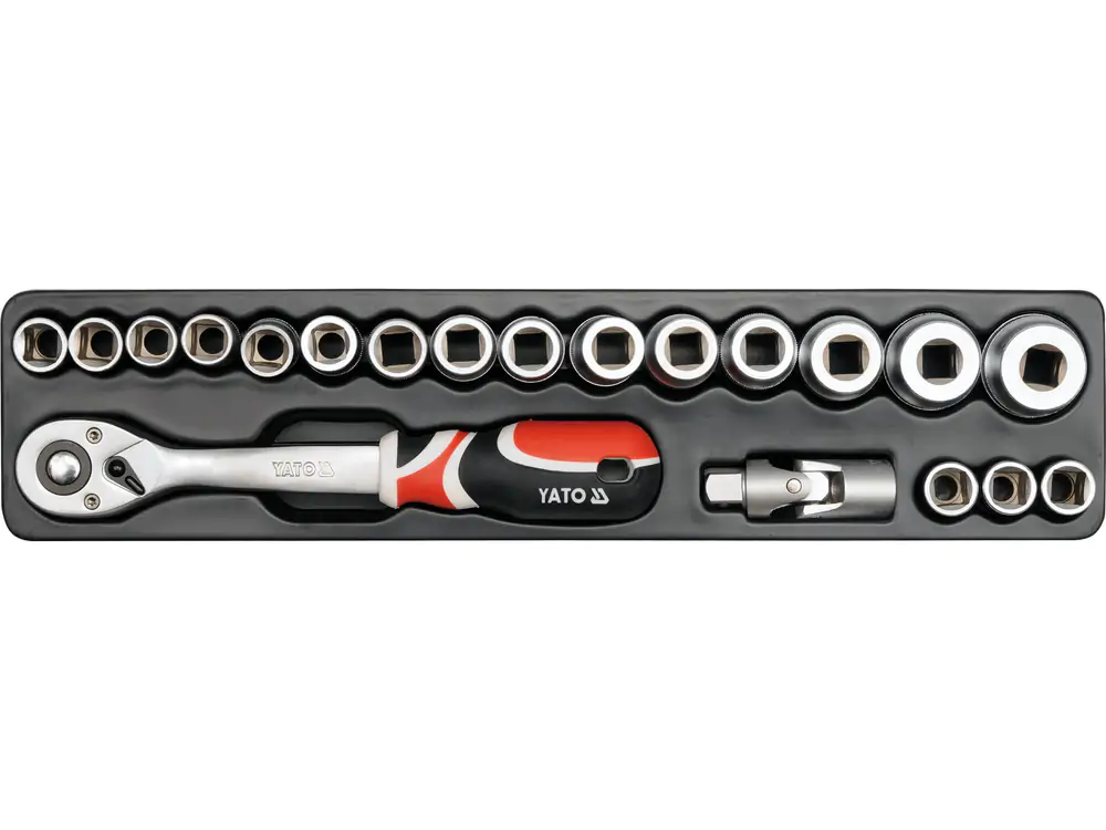 • Profesionalna garnitura alata YATO YT-3895, sa svojih 62 visokokvalitetna elementa, predstavlja sveobuhvatno rešenje za svakodnevne zahteve u auto-servisima, mehaničarskim radionicama i zahtevnim domaćinstvima. Ceo set je organizovan u robusnu kutiju od dvostrukog čeličnog lima, dimenzija 475x230x365 mm, zaštićenu trajnim praškastim lakom, koja obezbeđuje sigurno skladištenje i jednostavan transport. Osnova seta čine nasadni ključevi izrađeni od CrV 50BV30 čelika, poznatog po izuzetnoj čvrstoći i otpornosti na habanje, dok su svi bitovi konstruisani od izdržljivog S2 čelika, garantujući dug vek trajanja i pouzdanost pri intenzivnoj upotrebi. Ključna inovacija je integrisani AS-Drive sistem na nasadnim ključevima, koji povećava prenos obrtnog momenta za 25% uz potpunu zaštitu ivica matice od oštećenja. Svestranost i brzina rada značajno su unapređeni zahvaljujući račnoj sa 72 zuba, koja omogućava minimalni radni hod od svega 5 stepeni za rad u ograničenom prostoru, i QUICK RELEASE sistemu za trenutno oslobađanje i zamenju nastavaka. Ovaj set, koji uključuje metričke nasadne ključeve i pribor od CrV 6140 i 6150 čelika, pruža optimalnu kombinaciju profesionalne izdržljivosti, ergonomske funkcionalnosti i organizovanosti, čineći ga pouzdanim izborom za efikasno rešavanje mehaničkih izazova.
