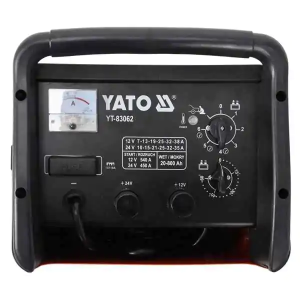 • YATO punjač–starter 12 / 24 V (20–800 Ah) je snažan i pouzdan ispravljač sa funkcijom pomoći pri pokretanju, namenjen profesionalnoj i poluprofesionalnoj upotrebi u auto-servisima, radionicama i garažama. Ovaj uređaj omogućava sigurno punjenje i startovanje vozila čak i kada je akumulator potpuno ispražnjen.