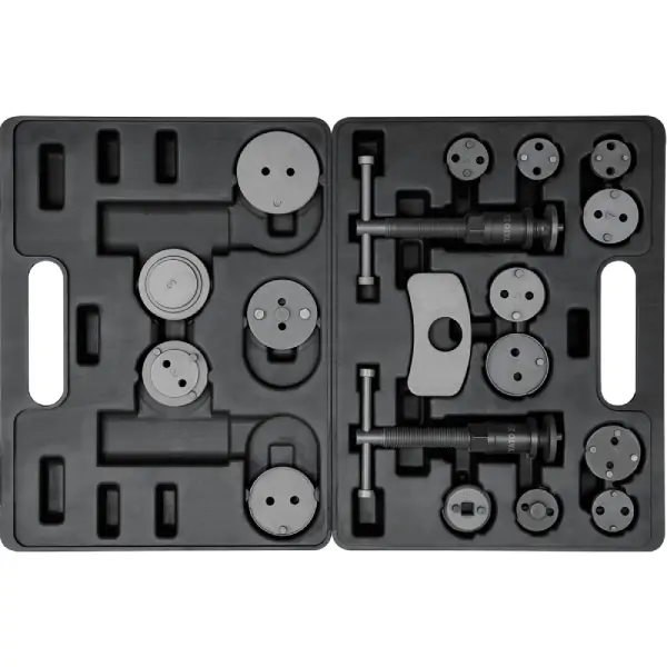 • Profesionalni set za vraćanje kočionih cilindara YATO predstavlja specijalizovano i pouzdano rešenje za specijalizovane auto-servise i mehaničare, dizajnirano da efikasno i bezbedno obavi ovaj ključni postupak održavanja kočionog sistema. Set se sastoji od dve ergonomske šrafcigere, sa opcijom okretanja u desno i levo, i kompletom prilagodljivih ploča koje omogućavaju sigurno i ravnomerno uvlačenje cilindara na širokom spektru vozila. Njegova sveobuhvatna kompatibilnost obezbeđuje primenu na modelima renomiranih proizvođača kao što su Audi, BMW, Volkswagen, Ford, Mercedes-Benz, Toyota, Honda, Nissan, Mazda, ali i na vozilima marki Citroen, Peugeot, Renault, Opel i drugih, čime pokriva većinu evropskih, japanskih i američkih vozila na tržištu. Ovaj alat eliminiše potrebu za improvizacijom i rizik od oštećenja delova, nudeći preciznu kontrolu pritiska i maksimalnu sigurnost tokom rada. Kao nezaobilazni deo opreme svakog ozbiljnog servisa, ovaj set direktno doprinosi bržem vremenu intervencije, povećanoj produktivnosti i garantovanom kvalitetu završetka pri servisu kočnica.