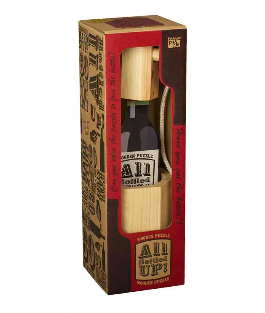 • Napomena: U kutiji dolazi i upustvo kako da ubacite flašu u zagonetku. A mali naš savet je da kupite vino, izvadite mozgalicu iz kutije, ubacite flašu u mozgalicu i potom je vratite u ovu ambalažu i sve tako đuture odnesete nekome kao poklon.